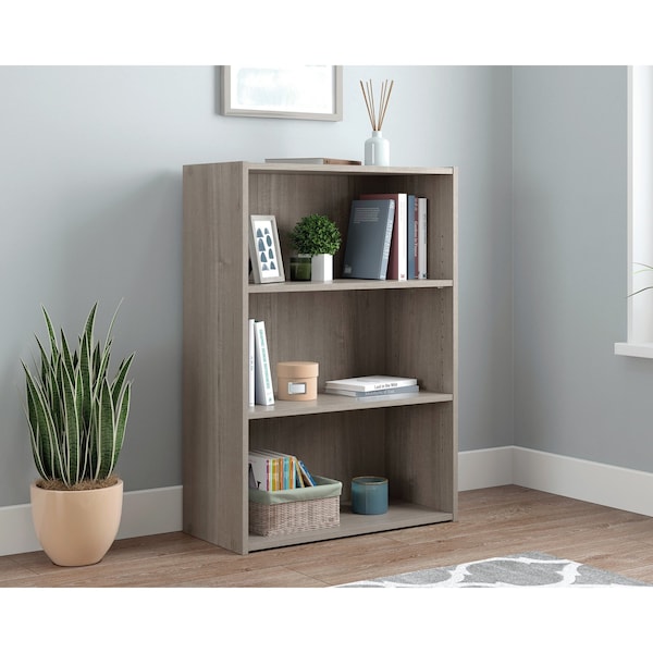 Finding the perfect small but functional bookcase doesn't have to be hard- especially once you take a look at this 3-shelf bookcase from the Beginnings collection. This living room bookshelf features three large shelves that provide you with the space you need to store items like your collection of books, stacks of magazines, and organizing bins. These shelves also make a great spot to display home dcor items like decorative plants, knick-knacks, and framed photos of your family and friends. The two middle shelves of this display bookcase are adjustable, allowing you to store items of multiple heights. The roomy top surface of this wood 3 shelf bookcase allows additional display space for your things! Finished in Silver Sycamore, this small versatile bookcase is not too big but not too small: as Goldilocks would say, it's just right.