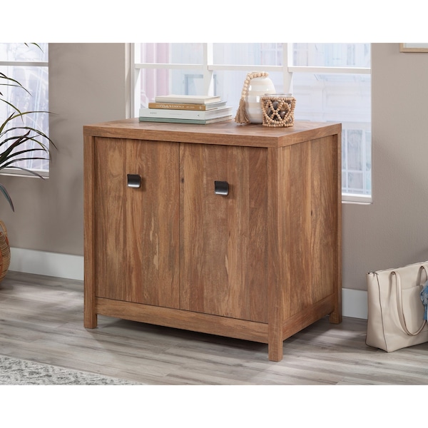 Storage space is a must in any modern home office. Add stylish storage to your workspace with this library base cabinet from the Cannery Bridge collection. Use the top surface of this 2-door base cabinet for a lamp, your binders, a planner, or use it as a space for your printer. A decorative herringbone pattern on the top surface means that you care about function AND style. Behind the double doors of this base storage cabinet is a hidden area with a large adjustable shelf for customizable storage options. You can stash books, papers, and other office essentials in this library storage cabinet all while utilizing as much space as possible. An enclosed back for cord access and management allows for a convenient path for cables and cords, minimizing clutter in your 2-door storage cabinet. This item is finished on all sides for a polished look from every angle. Finished in a stunning Sindoori Mango, this library cabinet will add style and functionality to your office.