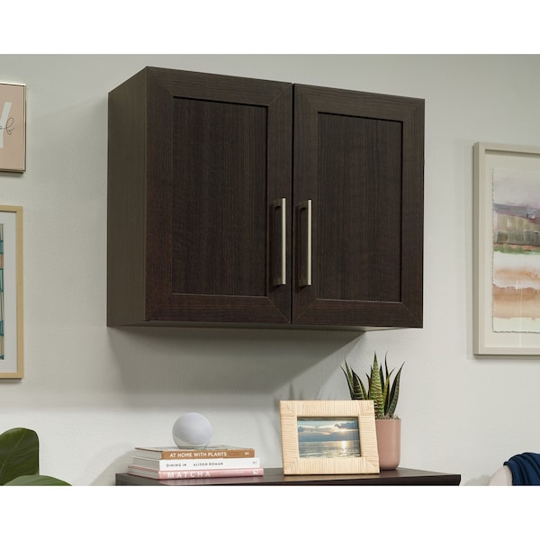 With a dark and neutral Dakota Oak finish, this hanging storage cabinet from the HomePlus collection will provide storage solutions in any room of the home. From tools in the garage to snacks in the kitchen, to toiletries in the bathroom, this wall-mounted cabinet with adjustable shelf is an ideal storage solution for spaces large or small. Utilize wall space while keeping floors and walkways clear of clutter with this wall cabinet for garage. Behind the elegantly framed panel doors is an adjustable shelf that gives the flexibility to store items in a variety of sizes. Create extra storage above the kitchen sink or add media storage above the television. This wall-mounted cabinet maximizes vertical space that often goes overlooked and unused. With a space-saving, hanging design that offers versatile placement anywhere in the home, this 2-door wall cabinet will elevate the storage horizon.