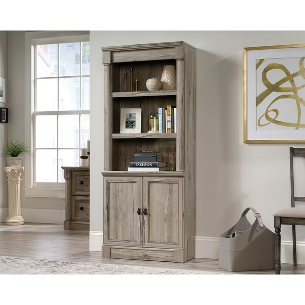 No office is complete without convenient storage and organization. Tidy up your workspace without having to sacrifice on style with this library bookcase with doors from the Palladia collection. This stunning five-shelf bookcase features five spacious areas that provide you with the space to store and display various items, such as your book collections, decorative plants, stacks of magazines, and photos of your family and friends. Three of the shelves are adjustable, giving you the ability to move them to different heights to create flexible storage for items of all shapes and sizes. This bookcase with doors also features hidden storage behind two framed panel doors. Its enclosed back panel includes cord access so you can keep all your wires neat and out of sight. Lean into your rustic-meets-classic style. Finished in Split Oak and detailed with attractive hardware, this five-shelf bookcase with doors gives your home office just the organization it needs while offering you the opportunity to furnish your space in a style that reflects your personality.