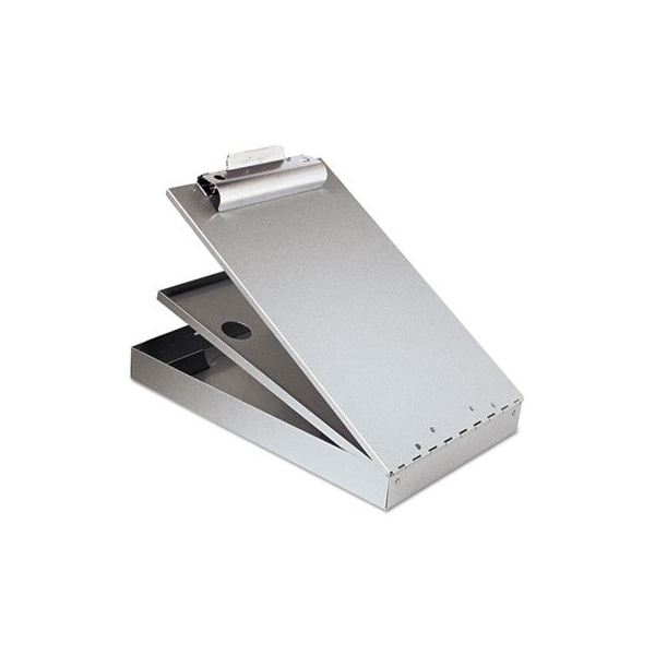 The Cruiser Mate is the ideal tool for law enforcement, salespeople, students, and more. High-capacity clip holds 1in of paper securely and includes a built-in license/card holder. Sturdy aluminum form holder features two separate storage trays. The bottom has a built-in pencil tray and 1in capacity for extra forms, reports, logs or tools. Additional 7/16in compartment for completed forms remains closed under the cover until needed. Upper tray is removable. Self-locking latch keeps the compartments securely fastened. Form holder is made of aluminum with a high percentage of recycled material. Holds Paper Size: 8.5 x 11; Clipboard Actual Size: 9 x 14; Clipboard Material: Recycled Aluminum; Clip Capacity: 1.5in.