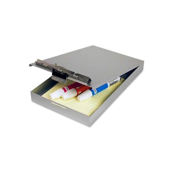 Saunders clipboard/citation holder 6" x 9" aluminum use this handy clipboard with a storage compartment as your portable desktop. Strong exterior offers a sturdy writing surface. Patented clip system provides a high-tension clip with license/card holder and self-locking latch that keeps the compartment securely fastened. Top opening allows easy access to the 1" storage compartment where you can store forms, documents, and other supplies. Clipboard is made of aluminum with a high percentage of recycled post-consumer material.