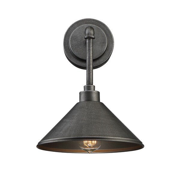 The Dansk takes its cue from old factories: an industrial-inspired design is solid and practical, yet streamlined and stylish for today?s decor. This sconce has pipe-like detailing, round wall plate, and a clean lined, funnel-shaped shade ?all with a neutral-colored, galvanized metal finish. One 60W, E-style bulb provides ample illumination and using an exposed filament or Edison bulb will add to the vintage, utilitarian appeal. This fixture is 8? wide, 13? high, and extends 10? from the wall. It?s perfect for understated, industrial style in your kitchen, dining area, family room, entryway, great room, bedroom, game room, office, or hallway. And it?s UL rated for damp locations, so may be used in your bathroom or powder room, too.