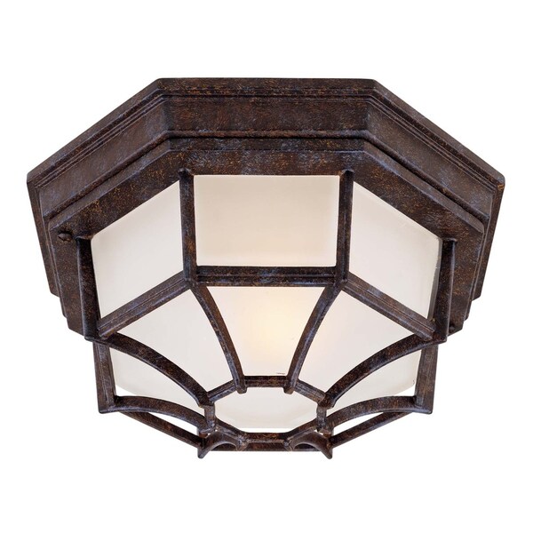 Decorate your favorite outdoor spaces to bring a sense of style Al Fresco! Rustic Bronze finish with Frosted glass and UL Damp Location rated.