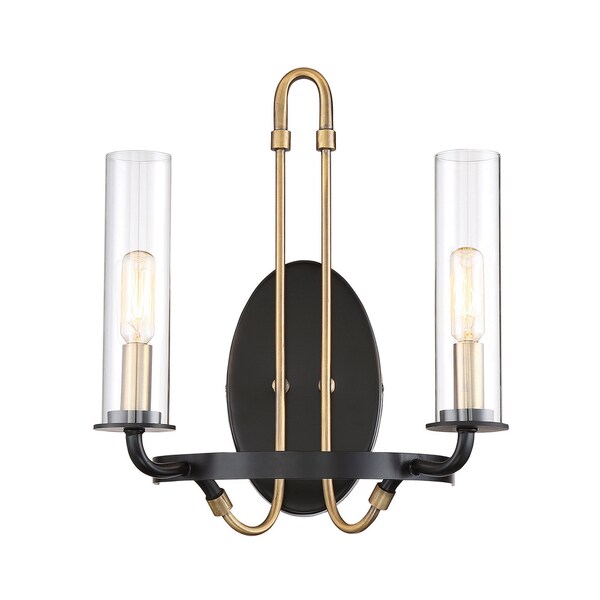 Sleek, stylish and sophisticated with its clean lines and ultrachic use of mixed metals, the Kearney 2-light sconce from Savoy House is an excellent example of modern style lighting at its finest. Beautifully designed and constructed of vintage black metal with warm brass accents, this elegant wall sconce is both on-trend and timeless. It looks great with traditional, transitional and contemporary d?cor, and can be used throughout the home, for everything from entryway, hallway and office to dining room, bedroom and bath lighting. Wherever you choose to display the Kearney sconce, its handsome good looks and premium quality construction will make a fashionably impressive interior lighting statement.
