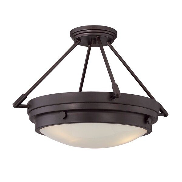 The Savoy House Lucerne 3-light ceiling semi-flush mount is sure to bring sleek metallic style to any space! A white glass shade makes Lucerne an ideal choice for comfortable, useful light. Finished in rich English bronze. Semi-flush mounts can be used on the ceiling of pretty much any interior room, including foyers, hallways, stairways, closets, bathrooms, bedrooms, kitchens and more! Bulbs not included. The English bronze finish can be paired with bronze hardware or mixed with hardware in other finishes. Pep up the light and style of any room with Lucerne. When you choose a Savoy House lighting fixture, you can be certain you've selected a piece that will withstand the test of time.