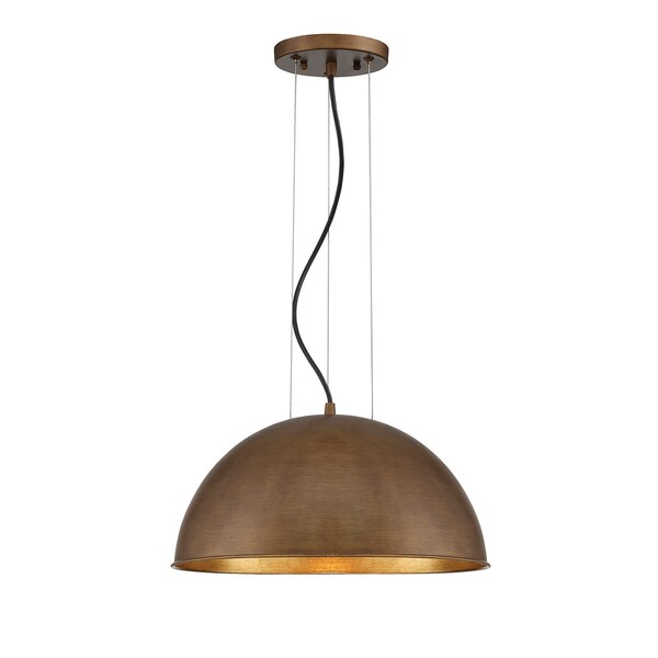 Spherical and sophisticated! The Sommerton pendant has streamlined, understated style that blends well with transitional, contemporary, industrial-inspired, eclectic, and modern farmhouse decor. The single, large, half-globe shade has a textural, rubbed zinc finish all over the outside of the fixture, and a wonderful, silver leaf finish on the inside. Within the shade, one 60W, E-style bulb provides plenty of illumination, reflecting off the silver leaf. This pendant is 16? wide and 10? high, with a 10 to 130? adjustable hanging height. It makes a bold design statement, with an uncluttered style that sets a serene mood ?perfect for your dining room, kitchen, family room, foyer, living room, office, bedroom, stairway, or great room.