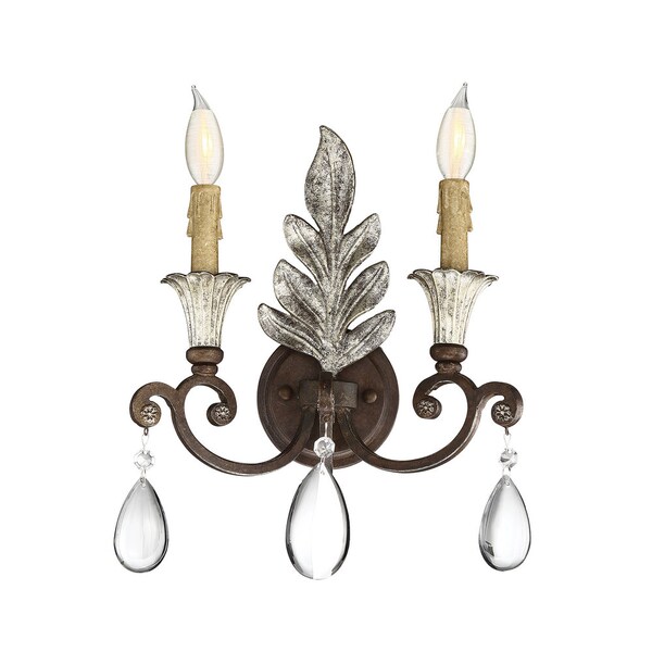 Sculptural and glamorous, the St. Laurence sconce will be a splendid piece of your home?s decor! Designed by Frederico Martinez, this dazzling wall sconce has all the finely crafted details to make a grand appearance and high style statement. The curvy lines of the frame are full of decoration: filigree, scrollwork, fluted candle cups, and floral and leaf accents. The entire structure has a beautiful, rich, new tortoise shell and silver finish. And three large crystal drops made of gorgeous, clear water glass, hang from the sconce. Antique cream drip candle covers add to the traditional charm, and two 60W, C-style bulbs provide superb illumination. Overall, it?s a lovely sconce you will enjoy having in your home.