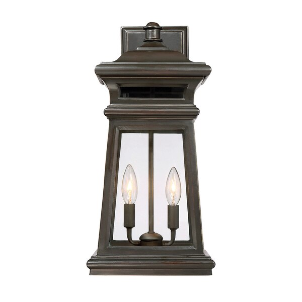 The Taylor wall lantern will brighten your home?s exterior with welcoming light and classic style. A streamlined, four-sided, traditionally shaped lantern has bold, tiered outlines, a solid rectangular wall plate, and a delightful hip-style roof with top finial. Panes of pristine, clear glass allow two 40W, C-style bulbs to really shine. The lantern has a rich, English bronze with gold finish and is constructed of weather resistant Endure-All. Produced with injection molding, Endure-All is non-corrosive and UV resistant, for unparalleled durability. This lantern is 9.5? wide, 19.5? high, and extends 10? from the wall. Plus, it?s UL rated for damp locations: perfect for your porch, patio, sunroom, or pergola.