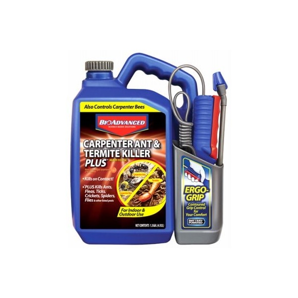 SBM BioAdvanced 1.3 Gallon Ready to Use Carpenter Ant & Termite Killer power sprayer with ergo grip. Kills on contact and protects for up to 4 months with long lasting residual performance even on porous surfaces. Plus kills Ants Fleas Ticks Crickets Spiders Flies & more.