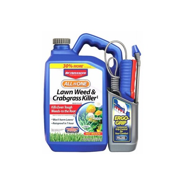 SBM BioAdvanced 1.3 Gallon Ready to Use Formula Advanced All-in-One Lawn Weed & Crabgrass Killer. Comes in an ergo grip power spray bottle.