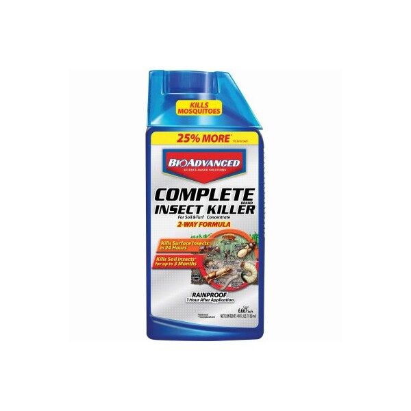 SBM BioAdvanced 40 oz. Complete Insect Killer For Lawns Concentrate. Works above ground to kill Fleas Ticks Ants Chinch Bugs Cutworms & other listed insects. Controls sub surface pests like Grubs Mole Crickets European Crane Fly kills surface insects on contact. Protection lasts 90 days. Active ingredients: Beta Cyfluthin & Imidacloprid.