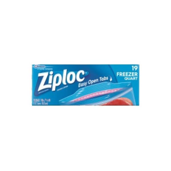 19 Count, QT, Heavy Duty, Ziploc Freezer Bag With Gripper Zipper Write On Label, 7 x 514 New Pinch Seal Design Tab To Secure Freshness