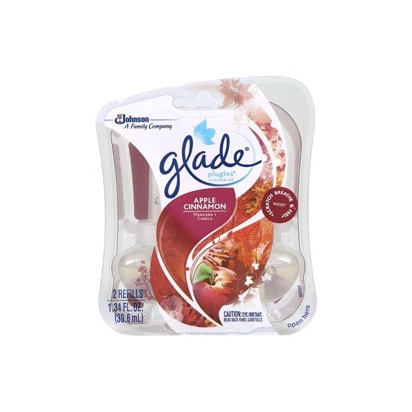 Glade PlugIns, 2 Count, Apple Cinnamon Glade PlugIns Scented Oil Refill, Can Be Used With Glade PlugIn Scented Oil Warmer Refill Starter Kit, TV 148729