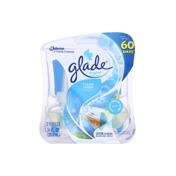 Glade PlugIns, 2 Count, Clean Linen Scent Oil Refill, Can Be Used With Glade PlugIn Scented Oil Warmer Refill Starter Kit, TV 148729
