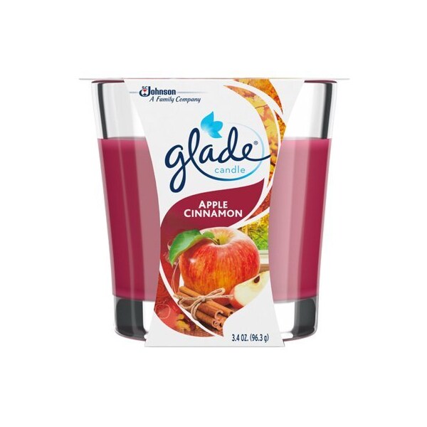 34 OZ, Glade, Apple Cinnamon Scented Wax Candle, In A New Decorator Glass Container, Burns Up To 28 Hours