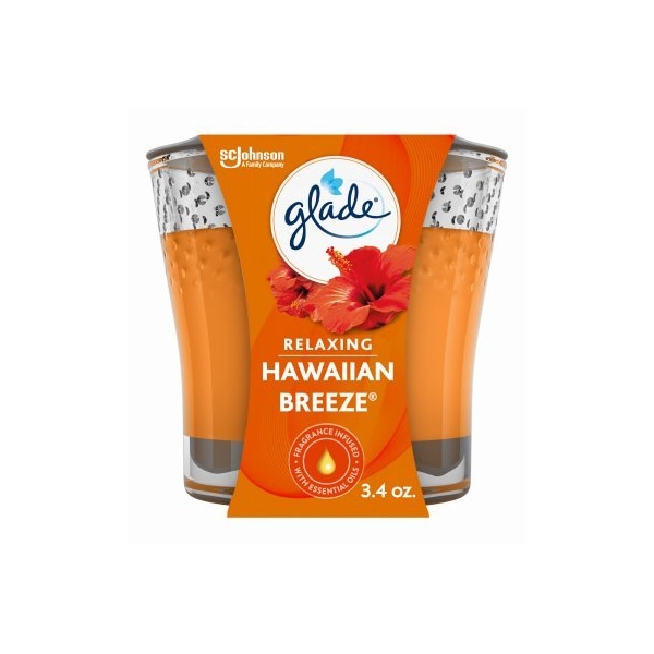 34 OZ, Glade Hawaiian Breeze Scented Wax Candle, In A New Decorator Glass Container, Burns Up To 28 Hours
