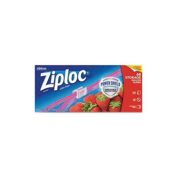 Get unbeatable protection with Power Shield technology featuring an easy close slider and more durable film. Ziploc Brand Slider bags are strong enough to use again. Keep your food fresh with these slider bags. Each bag features a slider closure and an expandable bottom that opens into a flat base, helping the bag stay upright so it's easy to fill. Application: Storage; Capacity Range Volume Max: 1 gal; Materials: Plastic; Width: 9.5in.