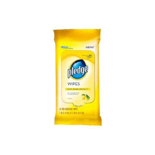 Pledge, 24 Count, Lemon Furniture Wipes, Disposable Dust Cloths, PreMoistened With Pledge Cleansing Conditioners, NoWax Formula