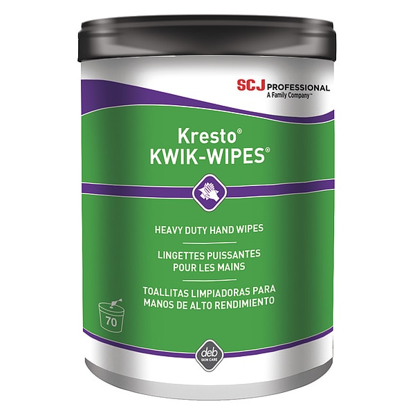 Hand Cleaning Towels, Container Type Canister, Flushable No, Form Wipes, Formula C9-C11 Pareth, Dipropylene Glycol Methyl Ether, PEG-75 Lanolin, Phenoxyethanol, Sodium Benzoate, Sodium Caprylyl Sulfonate, Sodium Laureth Sulfate, Tripropylene Glycol Methyl Ether, Fragrance Citrus, Hygiene Properties Silicone Free, NSF Rating Not Rated, Series Kresto(R), Standards Federal Food, Drug and Cosmetic Act, OSHA Hazard Communication, Wipe Length 12 in, Wipe Width 10 in, Wipes per Container 70