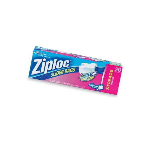 Ziploc, 20 Count, QT, Slider Storage Bag, Can Be Used For Lunch, Travel Companion, Leftovers, Easy Open, Easy Close, Expandable Bottom