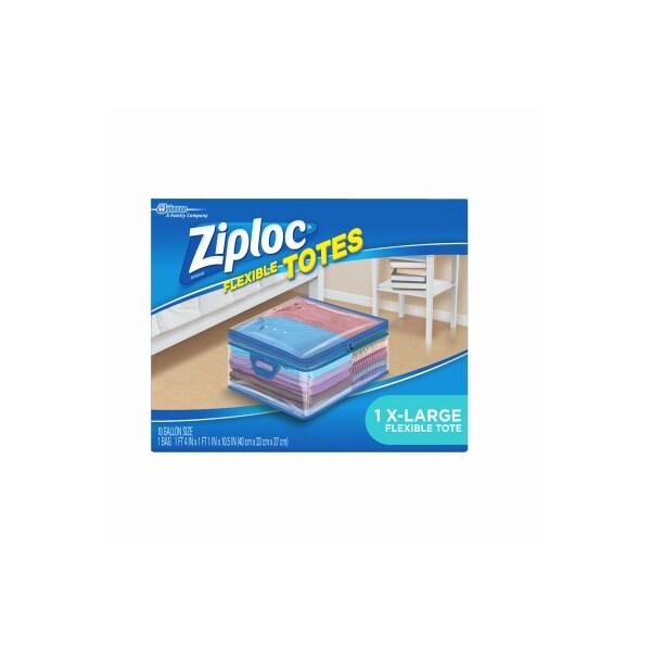 XL, Ziploc Flexible Storage Tote, 10 Gallon Capacity, Made From 6 Mil Thick, SemiTransparent, Flexible Plastic Film, Zipper Closure, Handles For Carrying, Flexible Storage Solution That Helps Organize Maximize Space, Fits In Tight Spaces, 16 x 13 x 109