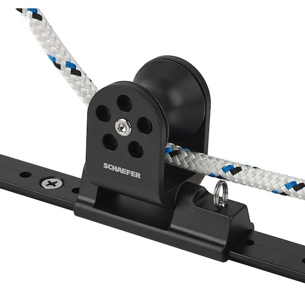 Twin Sheet Lead 25x3MM - Black 32-77 Twin Sheet Lead block. The anodized aluminum body is machined from 6061-T6 aluminum and articulates to ensure a proper lead. Anodized aluminum sheave runs on NomexTM/TeflonTM bearing for a low-friction high strength sheave. Pin stop makes adjustment simple. Features: Track Size 1 in. x 1/8 in. 25 mm x 3 mm Boat Size Up To LOA 29' Disp. 5000 lbs. Sail Area 315 sq. ft 8m, 2270 kg, 29 m2 Sheave Dia. 1-1/2 in. 38 mm Max Line 2 1/2 in. 13 mm L 3-1/2 in. 89 mm W 1-11/32 in. 34 mm H 3-9/32 in. 83 mm Bearing Height 1-29/32 in. 49 mm SWL 2500 lbs. 1135 kg Weight 10 oz. 284 g