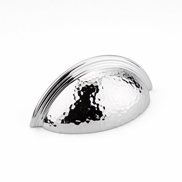 3in Center to Center Atherton Hammered Plain Edge Cup Pull Polished Chrome Finish