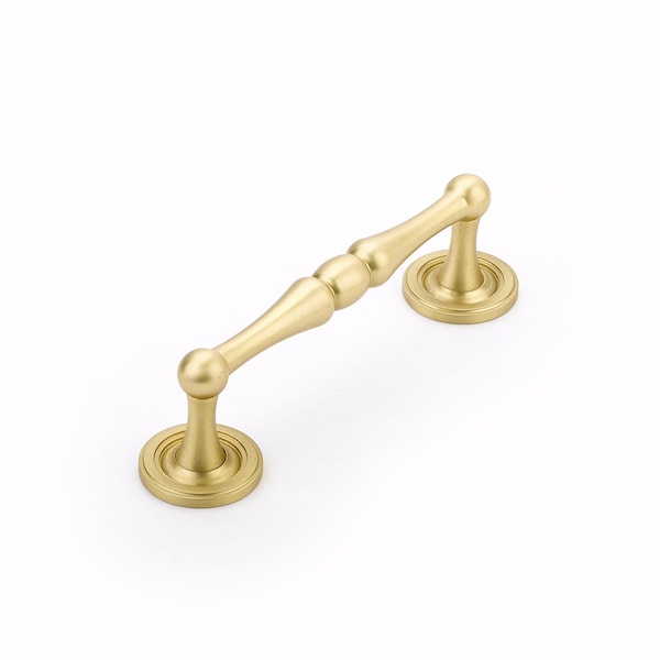 4in Center to Center Atherton Cabinet Pull Satin Brass Finish