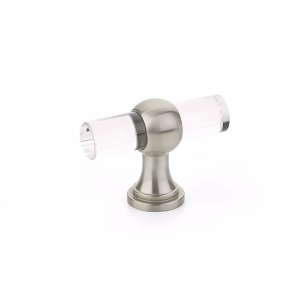 Lumiere Transitional Cabinet T Knob Acrylic Satin Nickel Finish