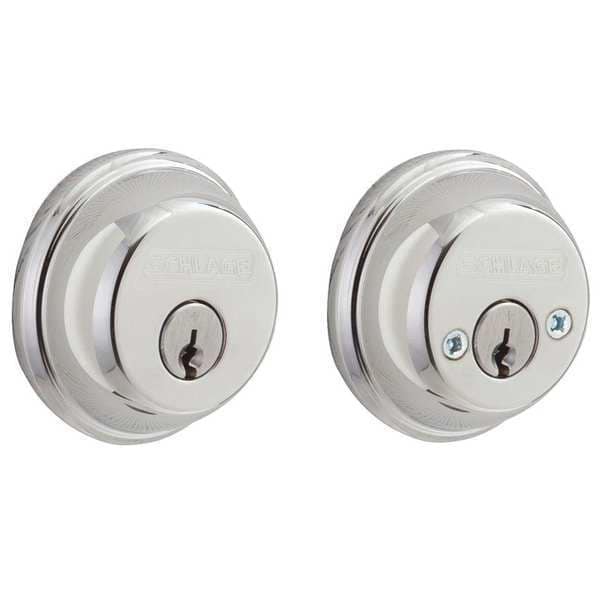 Deadbolt Lock, Cylindrical, Residential, Lockset Grade 1, Series B, Lockset Finish Bright Chrome, Keyway Type C, Key Type Keyed Different, Standards ANSI/BHMA A156.40-2015, ADA Compliant No, Lockset Fire Rating Not Rated, Backset 2 3/8 in, Ligature Resistant No, Cylinder Double, Faceplate Dimensions 1 in x 2-1/4 in, For Door Thickness 1 3/8 in to 1 3/4 in, For Use With Keyed Knobs and Lever, Includes Latch, Strike Plate, Material Steel, Number of Keys 2, Pins 5, Security Type Light-Duty