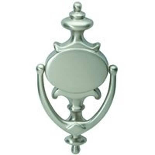 Door Knocker, Solid Brass, Satin Nickel, 5 in Mounting Hole