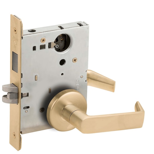 Dormitory Mortise Lock with Deadbolt, 06B Design, Less Cylinder, Satin Brass