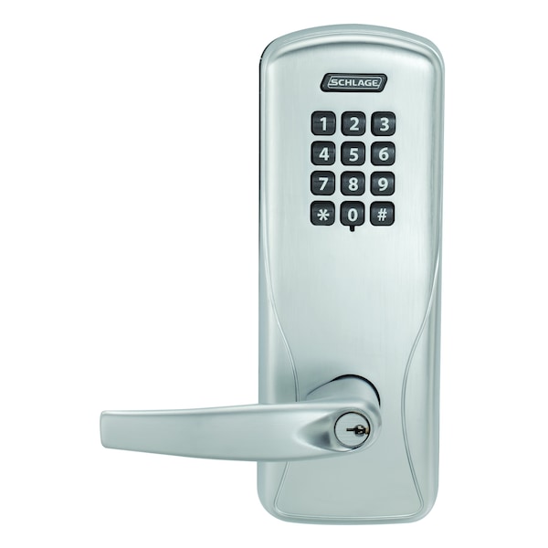 For more than 90 years, Schlage has been creating the strongest and most technologically advanced security products for homes, multi-family, commercial, and institutional buildings. We have been meticulous designers, painstaking engineers, and proud cra'smen. From durable mechanical locks to comprehensive electronic access control solutions and biometrics, Schlage provides protection at critical moments-when property and personal security are at stake. In homes, public buildings, and the workplace, at the end of the day, Schlage stands for one thing: strong. Schlage Electronic Standalone Keypad Programmable Electronic Lock Cylindrical Classroom / Storeroom Keypad Athens Lever with 13247 Latch and 10025 Stike with C Keyway Satin Chrome Finish.