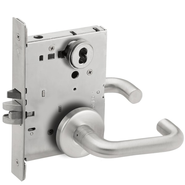 Grade 1 Classroom Mortise Lock, SFIC Prep Less Core, 03 Lever, B Rose, Satin Chrome Finish, Field Reversible