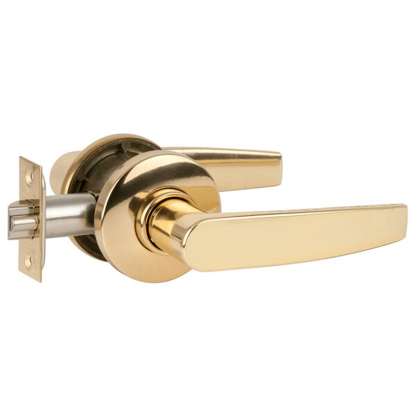 Grade 2 Tubular Lock, Passage/Closet Latch Function, Non-Keyed, Jupiter Lever, Bright Brass Finish, Non-Handed