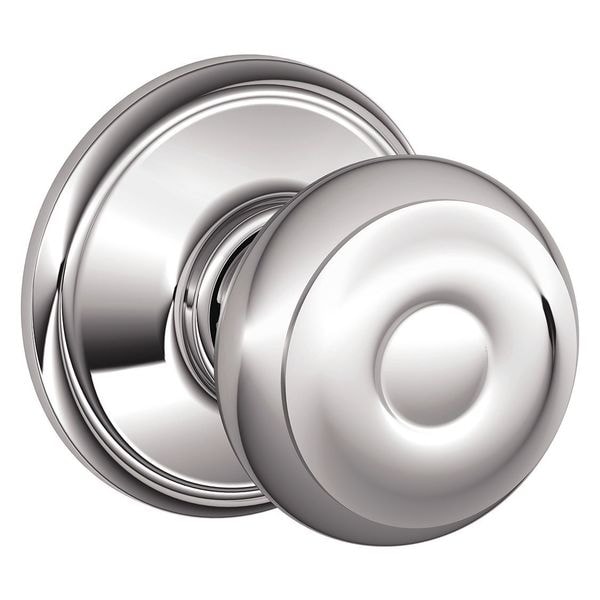Residential Knob Lock, Lockset Function Passage, Style Georgian, Polished Chrome Finish, Not Rated Fire Rated, Strike Type Round Corner Full Lip Strike, Strike Dim. 1-5/8 In. x 2-1/4 In., Grade 2, Series F, Backset 2-3/8 In. and 2-3/4 In., Required Door Thickness 1-3/8 In. and 1-3/4 In., For Use With Residential/Light Commercial Applications, Includes Strike, Latch and Mounting Hardware, Standards ANSI/BHMA A156.2, 2011