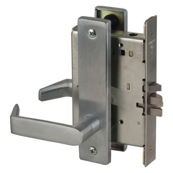 Mortise Lockset, Escutcheon, Commercial, Series L, Style 06L, Finish Satin Chrome, Function Classroom, Keyway Type C123, Grade 1, Material Brass/Steel/Zinc, For Door Thickness 1-3/4 In, Backset 2-3/4 In, Crossbore Size 4 In, Key Type Nickel Silver, Number of Keys 2, Pins 6, Strike Square Corner, Required Door Thickness 1-3/4 In, Keying Keyed Different (KD), Standards ANSI/BHMA Certified A156.13-2005, Fire Rated 3 hr., Includes Hardware