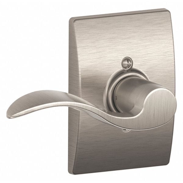 Mechanical, Lever, Cylindrical, Lockset Function Dummy, Lockset Grade 2, Style F Accent/Century, Lockset Finish Satin Nickel, Keyway Type None, Key Type Not Keyed, Standards ANSI A156.2, ADA Compliant No, Lockset Fire Rating 3 hr, Backset 2 3/8 in or 2 3/4 in, Ligature Resistant No, Cylinder Core Type Not Included, Features Left Hand, For Use With Residential/Light Commercial Applications, Handle Material Brass, Includes Latch, Strike and Mounting Hardware, Item Door Lever Lockset