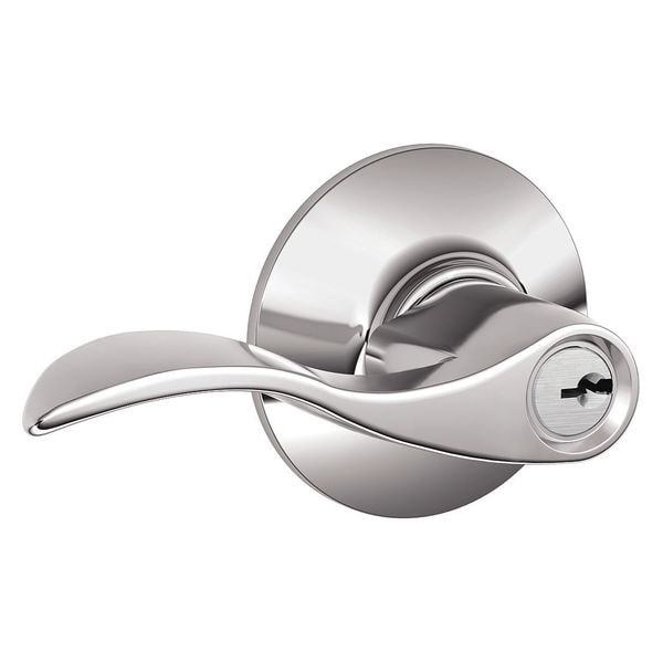 Door Lever Lockset, Light Duty, Lockset Function Entrance, Style Accent, Mechanical, Polish Chrome Finish, Strike Type Round Corner Full Lip Strike, Strike Dim. 1-5/8 In. x 2-1/4 In., Grade 2, Series F, Backset 2-3/8 In. and 2-3/4 In., Cylinder Core Type Conventional, Number of Pins 5, Required Door Thickness 1-3/8 In. to 1-3/4 In., Keyway Type C, Keying Keyed Different, Key Material Brass, Number of Keys 2, For Use With Residential/Light Commercial Applications