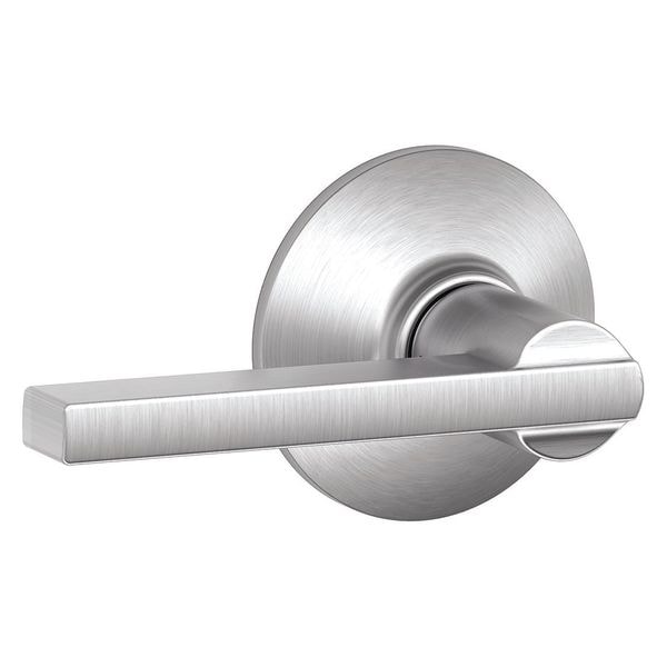 Door Lever Lockset, Light Duty, Lockset Function Passage, Style Latitude, Mechanical, Satin Chrome Finish, Strike Type Round Corner Full Lip Strike, Strike Dim. 1-5/8 In. x 2-1/4 In., Grade 2, Series F, Backset 2-3/8 In. and 2-3/4 In., Required Door Thickness 1-3/8 In. to 1-3/4 In., For Use With Residential/Light Commercial Applications, Includes Latch, Strike and Mounting Hardware, Standards ANSI-BHMA A156.2, 2011