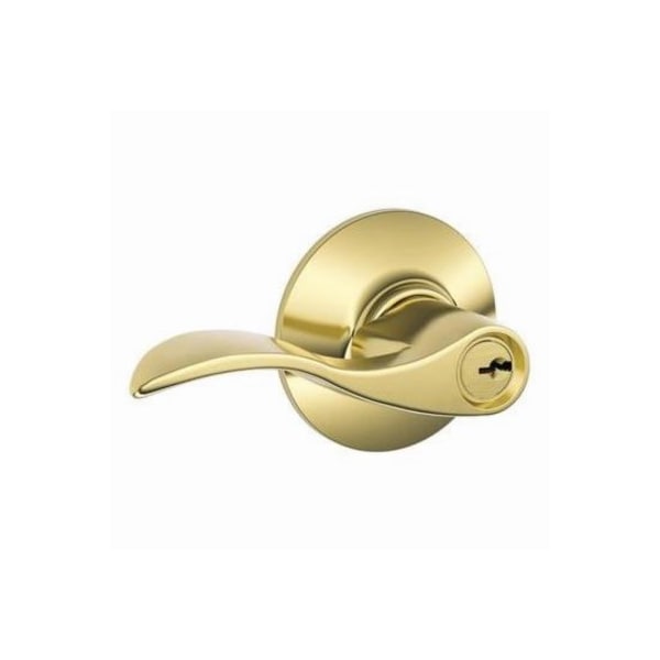 Bright Brass, Accent Design, Entry Lever Lockset, Dual Option Latch, Radius Corner Drive In, Universal 238 Or 234 Backset, Ultima Lifetime AntiTarnish Finish, ANSI Grade 2 Quality, Visual Pack