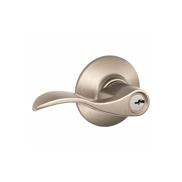 Satin Nickel, Accent Design, Entry Lever Lockset, Dual Option Latch, Radius Corner Drive In, Universal 238 Or 234 Backset, Ultima Lifetime AntiTarnish Finish, ANSI Grade 2 Quality, Visual Pack