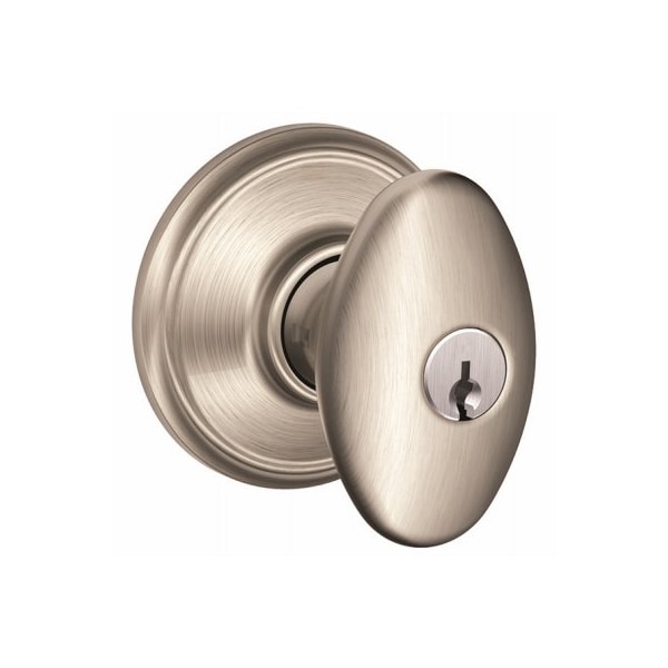 Satin Nickel, Siena Egg Knob Design, Entry Lockset, Dual Option Latch, Radius Corner Drive In, Universal 238 Or 234 Backset, Lifetime AntiTarnish Finish Warranty, ANSI Grade 2 Quality, Visual Pack