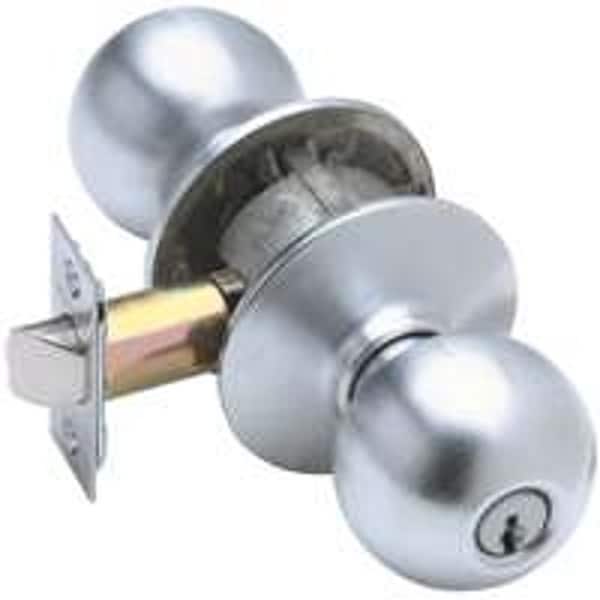 Orbit Series Keyed Entry Knob, BrassSteel, Satin Chrome