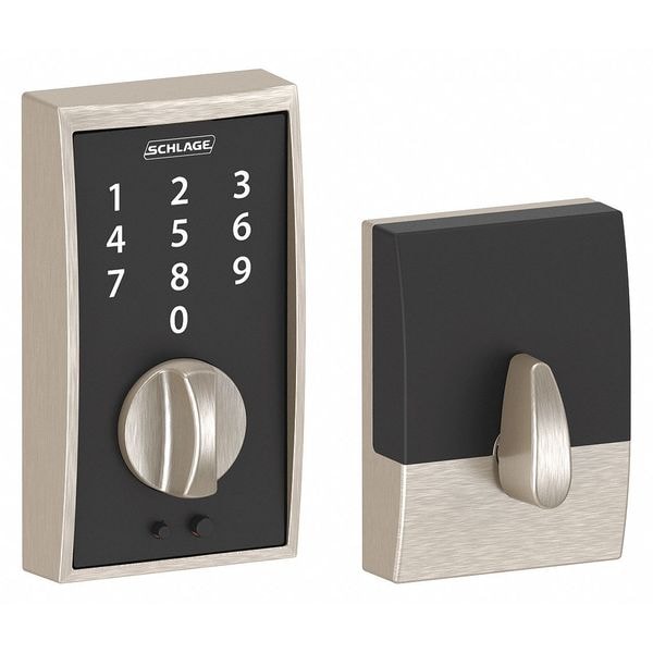Electronic Keyless Lock, Function Entry, Access Method Touch Screen Keypad, Mounting Style Cylindrical, Lock Material Zinc Alloy, Finish Satin Nickel, Series BE375, Handle Type Deadbolt, Door Thickness 1-3/8 in to 1-3/4 in, Key Override Options None, Hand Field Reversible, Network Interface None, Keypad Material Zinc, Power Source 9V Battery, Battery Life 1 to 2 yr, Max. User Codes 19, Fire Rating Not Rated, ADA Compliant No, Grade 2, Standards ANSI/BHMA A156.36-2010, ANSI/BHMA A156.40-2015