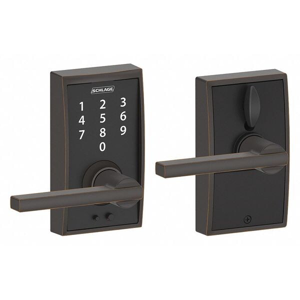 Electronic Keyless Lock, Function Entry, Access Method Touch Screen Keypad, Mounting Style Cylindrical, Lock Material Zinc Alloy, Finish Antique Bronze, Series FE695, Handle Type Lever, Door Thickness 1-3/8 in to 1-3/4 in, Key Override Options Schlage In.C In. 6 Pin Keyway, Hand Field Reversible, Network Interface None, Keypad Material Zinc, Power Source 9V Battery, Battery Life 1 to 2 yr, Max. User Codes 19, Fire Rating Not Rated, ADA Compliant No, Grade 2
