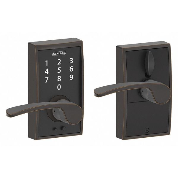 Electronic Keyless Lock, Function Entry, Access Method Touch Screen Keypad, Mounting Style Cylindrical, Lock Material Zinc Alloy, Finish Antique Bronze, Series FE695, Handle Type Lever, Door Thickness 1-3/8 in to 1-3/4 in, Key Override Options Schlage In.C In. 6 Pin Keyway, Hand Field Reversible, Network Interface None, Keypad Material Zinc, Power Source 9V Battery, Battery Life 1 to 2 yr, Max. User Codes 19, Fire Rating Not Rated, ADA Compliant No, Grade 2