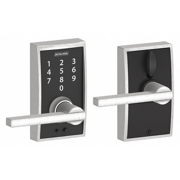 Electronic Keyless Lock, Function Entry, Access Method Touch Screen Keypad, Mounting Style Cylindrical, Lock Material Zinc Alloy, Finish Satin Chrome, Series FE695, Handle Type Lever, Door Thickness 1-3/8 in to 1-3/4 in, Key Override Options Schlage In.C In. 6 Pin Keyway, Hand Field Reversible, Network Interface None, Keypad Material Zinc, Power Source 9V Battery, Battery Life 1 to 2 yr, Max. User Codes 19, Fire Rating Not Rated, ADA Compliant No, Grade 2