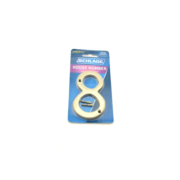 Solid Brass Carded Classic House Number 8 Satin Nickel Finish